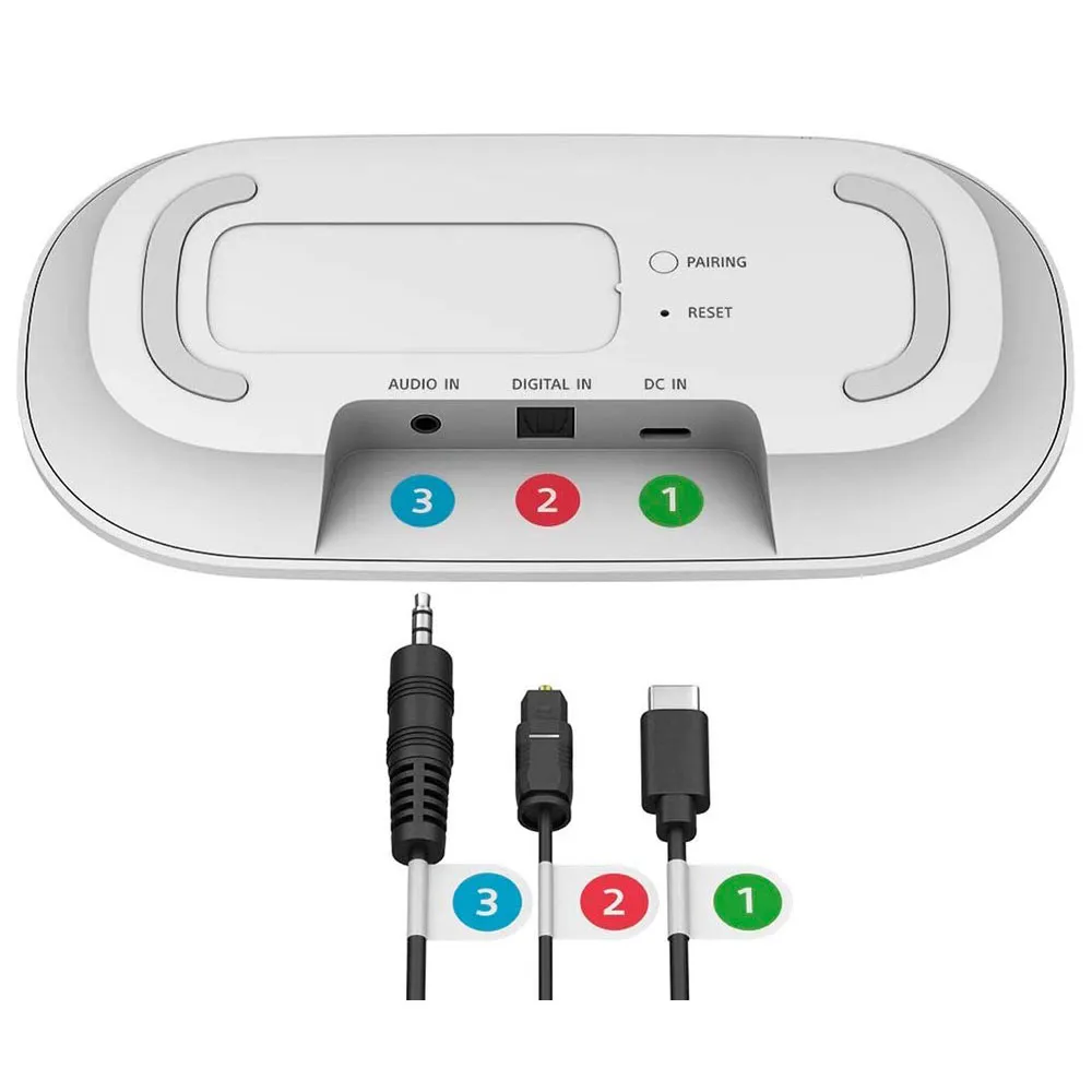 De SONY SRSLSR200.CE7 Speaker is een strakke en stijlvolle witte en grijze speaker die speciaal is ontworpen om de tv-audio te verbeteren.