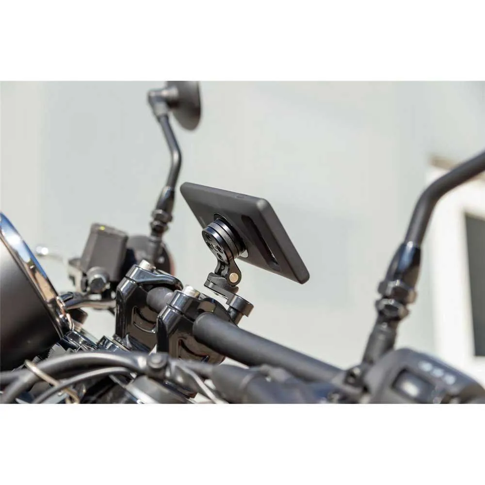 Bevestig uw SPTM Connect-telefoonhoes of andere SP ConnectTM-compatibele apparaten aan uw motor met de MOTO MOUNT PRO. De houder is CNC-gefreesd uit aluminium van vliegtuigkwaliteit en past op standaard en oversized sturen. Om uw smartphone verder te beschermen, heeft de houder ook een uniek trillingsdempingssysteem dat G-krachten tot 40% vermindert (afhankelijk van het model van fiets en telefoon). U kunt hem met de positioneringsarm of als directe klemmontage bevestigen, beide versies kunnen 360 ° draaien om de perfecte positie voor uw telefoon te vinden.