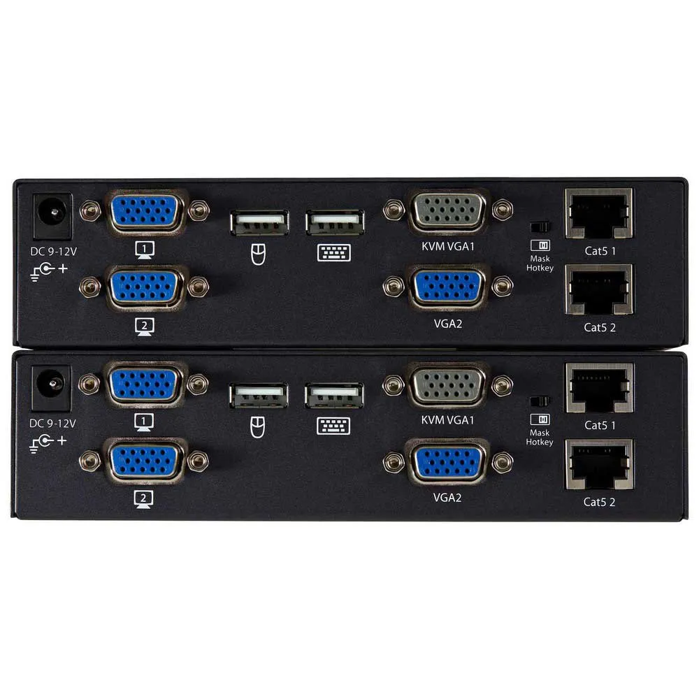 - De Dual VGA Cat5 KVM Extender ondersteunt eenvoudig te gebruiken sneltoetsen en drukknopcommando´s waarmee u kunt schakelen tussen lokaal en op afstand aangesloten systemen, terwijl console-aansluitingen aan beide uiteinden van uw setup gemakkelijke toegang bieden tot alle aangesloten systemen vanaf beide locaties.