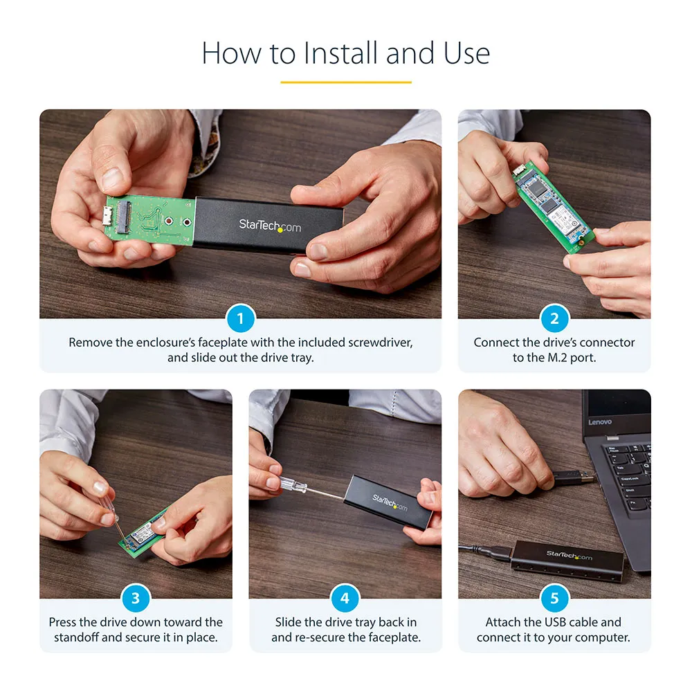 Productbeschrijving van Startech M.2 SSD Externe HDD/SSD-behuizing