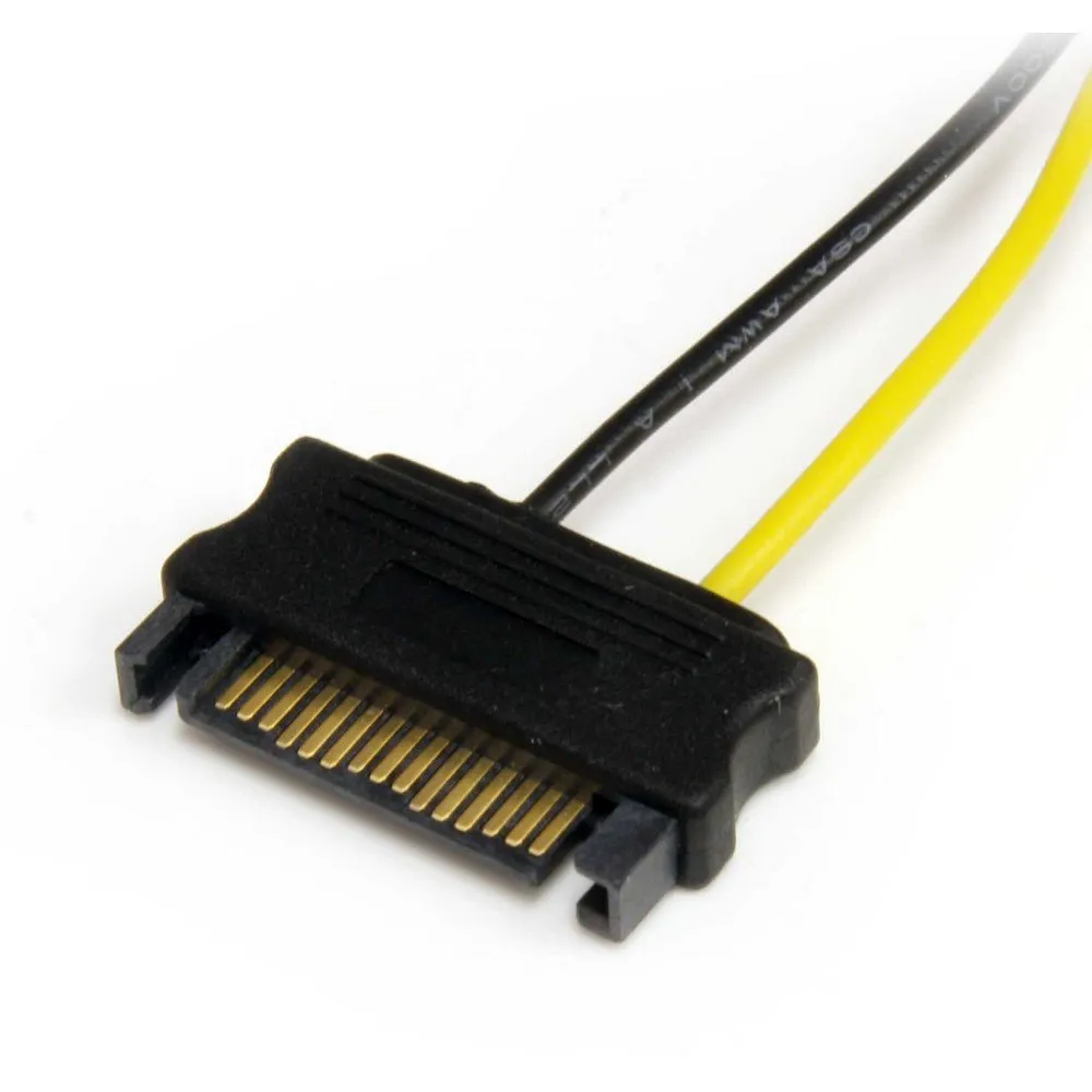 De Satpciexadap Sata naar Pci Express-voedingsadapterkabel voor videokaart heeft een 6-pins pci Express (mannelijke) voedingsconnector en twee 15-pins sata (mannelijke) voedingsconnectoren, die een kosteneffectieve manier bieden om een pc-videokaart aan te sluiten op seriële Ata-voeding Connectoren die door de computervoeding worden geleverd, en het elimineren van de noodzaak om de voeding te upgraden omwille van de compatibiliteit van de videokaart.