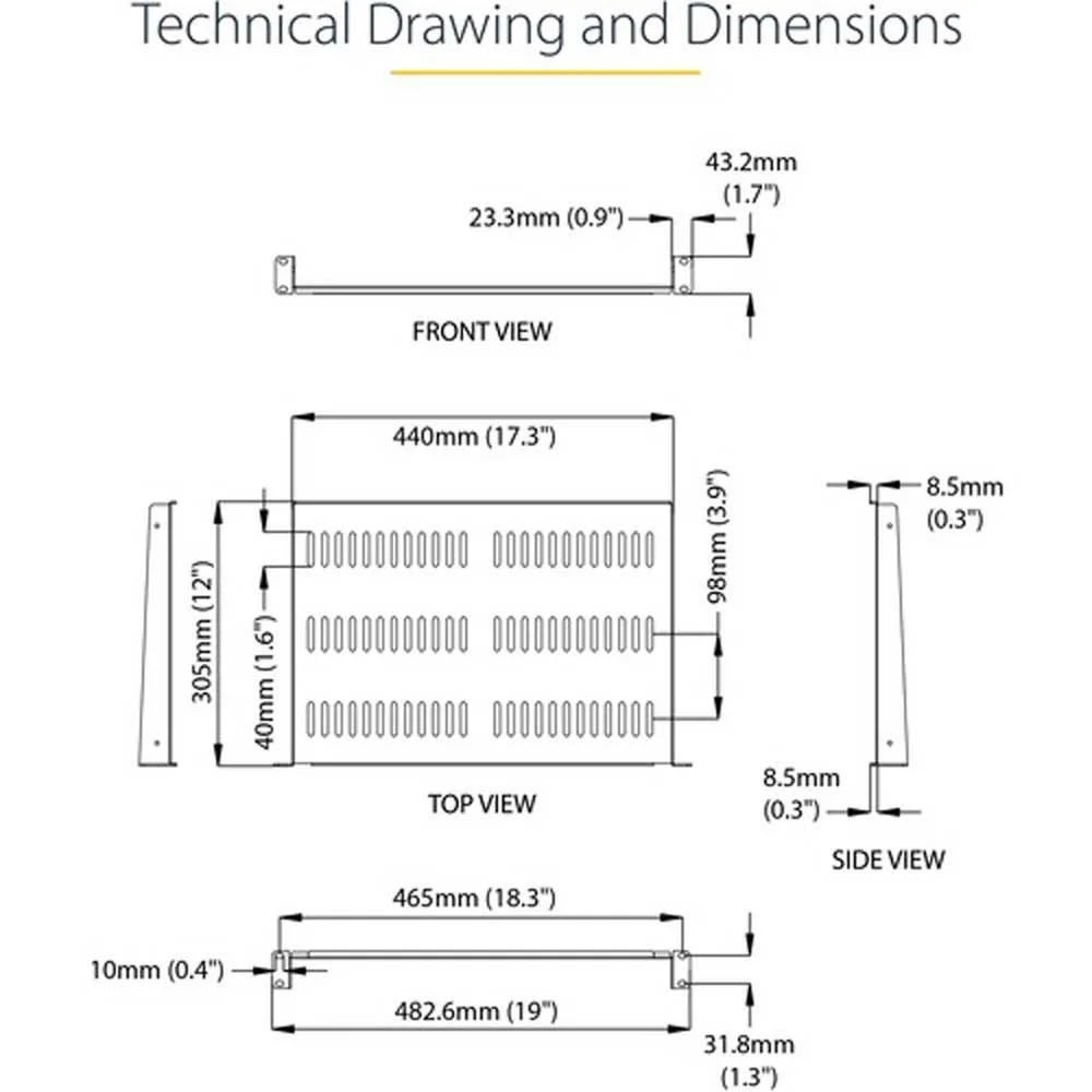 Technische specificaties Startech Vented Shelf 1U 12´´