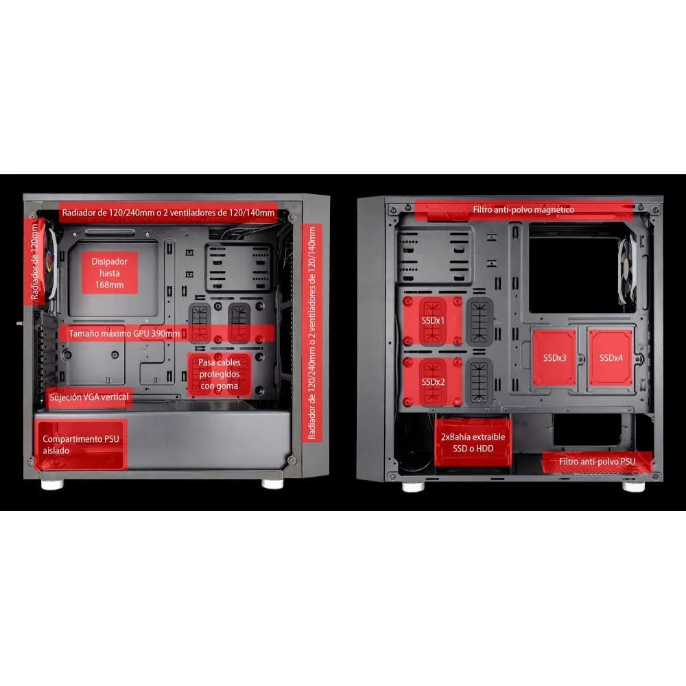 TALIUS TAL AURIGA, Toren, PC, Zwart, ATX, micro ATX, Metaal, Kunststof, Gaming