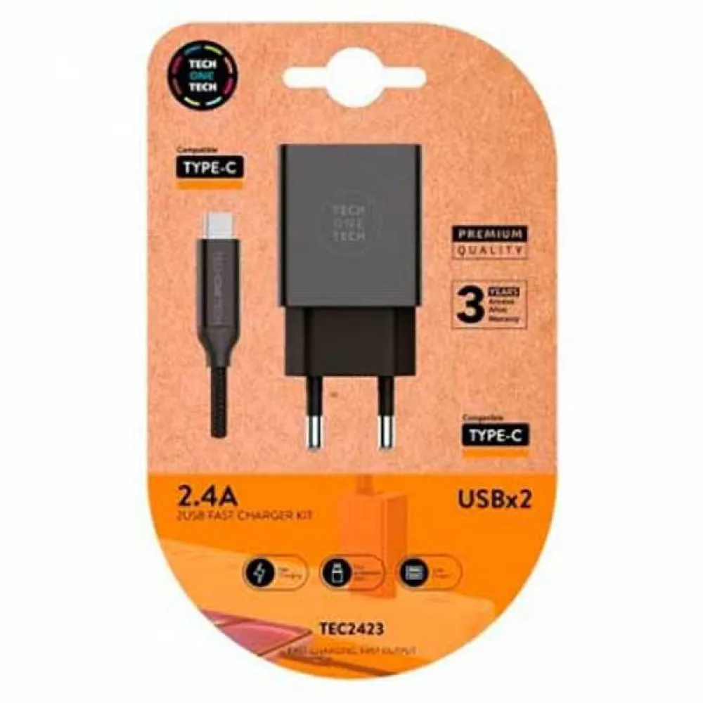 Tech One Tech Dubbele oplader + USB-C-kabel