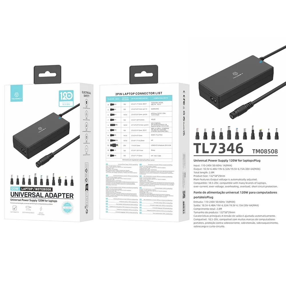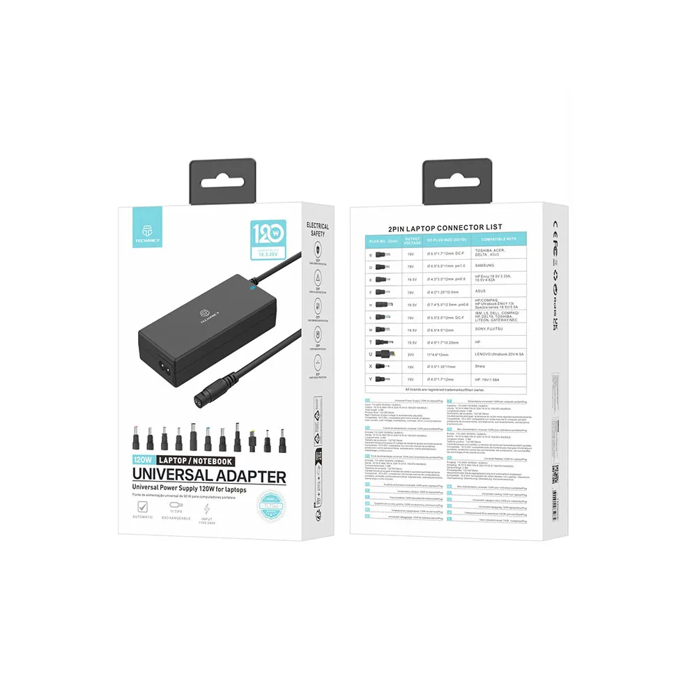 Productbeschrijving: De Techancy TL734 stroomadapter is een universele stroomvoorziening ontworpen voor laptops.