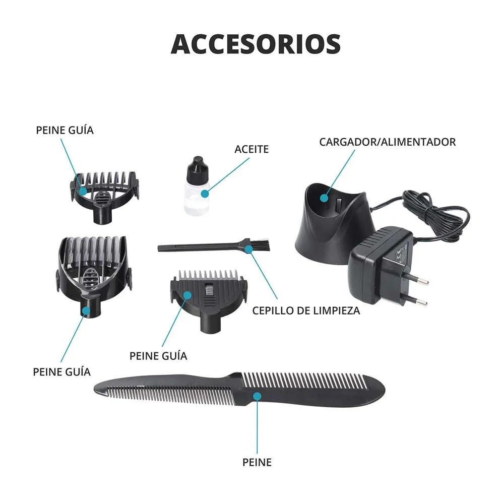 Draadloze professionele elektrische tondeuse met oplaadbare batterij van TM Electron met LED-laadindicator om de status van de batterij te kennen, titanium en keramische messen.
