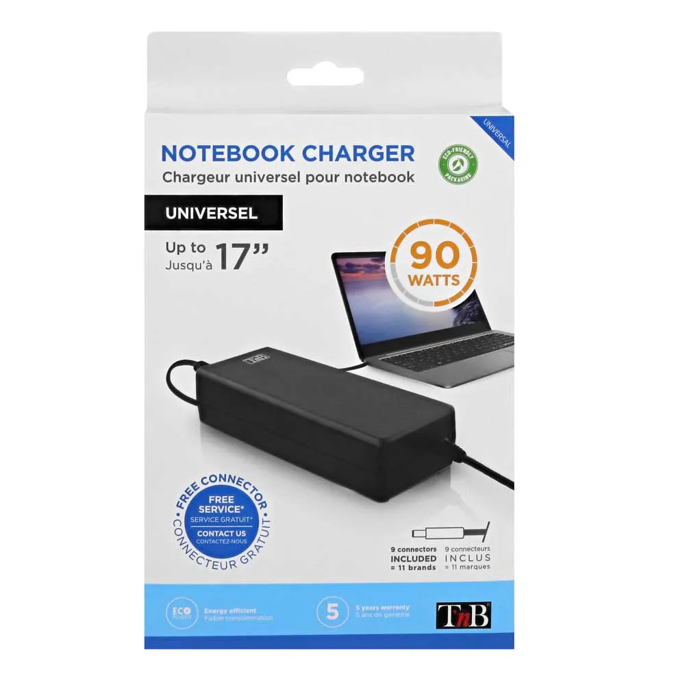 Universele voeding voor notebooks tot 17 inch. Compatibel met de meeste notebooks die worden gevoed door 19V (max. 90W). 9 adapters compatibel met de meeste notebookmodellen, inclusief de nieuwe LENOVO en HP: Asus, Acer, Samsung, Sony, HP, Toshiba, Packard Bell, MSI.... Meer dan 20 connectoren beschikbaar.