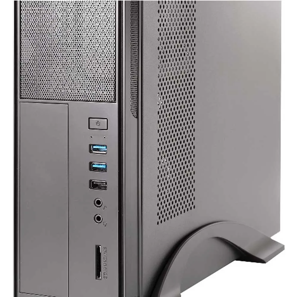 Het Slim Matx 2010-chassis, Efficiency-serie, heeft een compact ontwerp en is ideaal voor zowel professionele als persoonlijke omgevingen. Het is compatibel met de 52002-voeding (Psu Sfx 300w 85%). Deze versie biedt 85% energie-efficiëntie. Bovendien heeft het een microgeperforeerde voorkant met rooster en stoffilter dat de inlaat van lucht optimaliseert en de stroom ervan binnen de CPU verbetert.