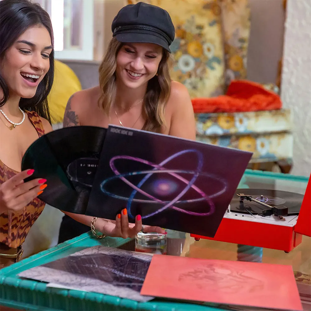 Vervaardigd met 25% gerecycled plastic en een volledig recyclebare verpakking, combineert deze milieuvriendelijke platenspeler retrostijl met geavanceerde geluidstechnologie.