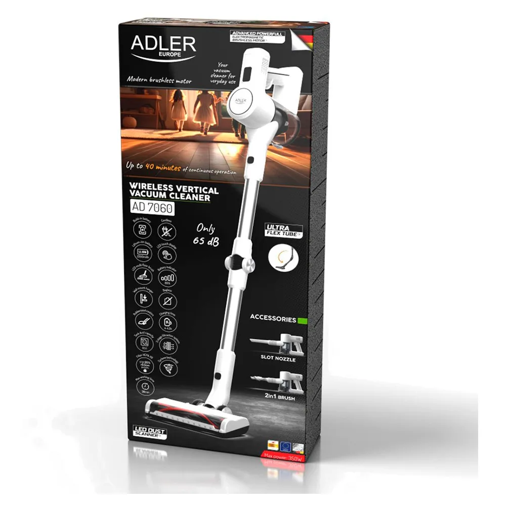 Den ultimate 2-i-1 rengjøringsløsningen. Oppdag en ny æra av rengjøringskomfort med ADLER AD 7060, en høytytende kostestøvsuger designet for å revolusjonere dine daglige gjøremål.