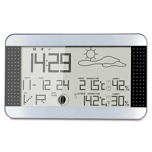 Den elegante, moderne innendørsenheten har en levende og tydelig skjerm som viser deg alt du trenger å vite med et enkelt blikk. Den inkluderte 4-i-1 trådløse utendørssensoren måler nøyaktig temperatur, fuktighet, vindhastighet og barometrisk trykk, og overfører dataene direkte til basestasjonen din. Dette lar deg holde deg perfekt oppdatert på forholdene rett utenfor døren din, ikke bare en generalisert regional værmelding.
