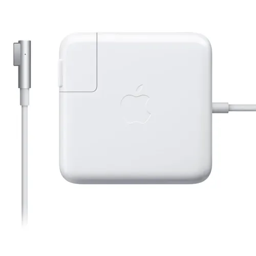 60 Watt MagSafe strømadapter har en magnetisk DC-kontakt som sikrer at strømkabelen kobles fra hvis den får unødig belastning og hjelper til med å forhindre skraping eller svekking av kablene over tid. I tillegg hjelper magnetisk likestrøm med å lede pluggen inn i systemet for en rask og sikker tilkobling.