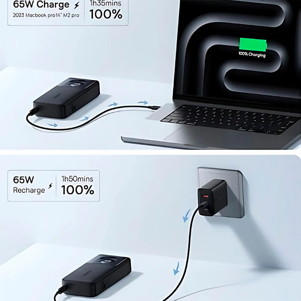 Ikke la deg lure av den kompakte størrelsen. Denne powerbanken er et kraftsenter som leverer lynraske 30W Power Delivery (PD) utgang. Denne høyhastighets ladekapasiteten kan fylle opp din iPhone 14 Pro til 60 % på bare 30 minutter, slik at du er tilbake i aksjon raskere enn noen gang. Med en kolossal kapasitet i området 15001-20000 mAh, har 20000mAh-batteriet nok energi til å gi flere fulle ladinger for de fleste flaggskip-smarttelefoner, nettbrett og andre viktige dingser, og sikrer at du holder deg tilkoblet i flere dager i strekk.