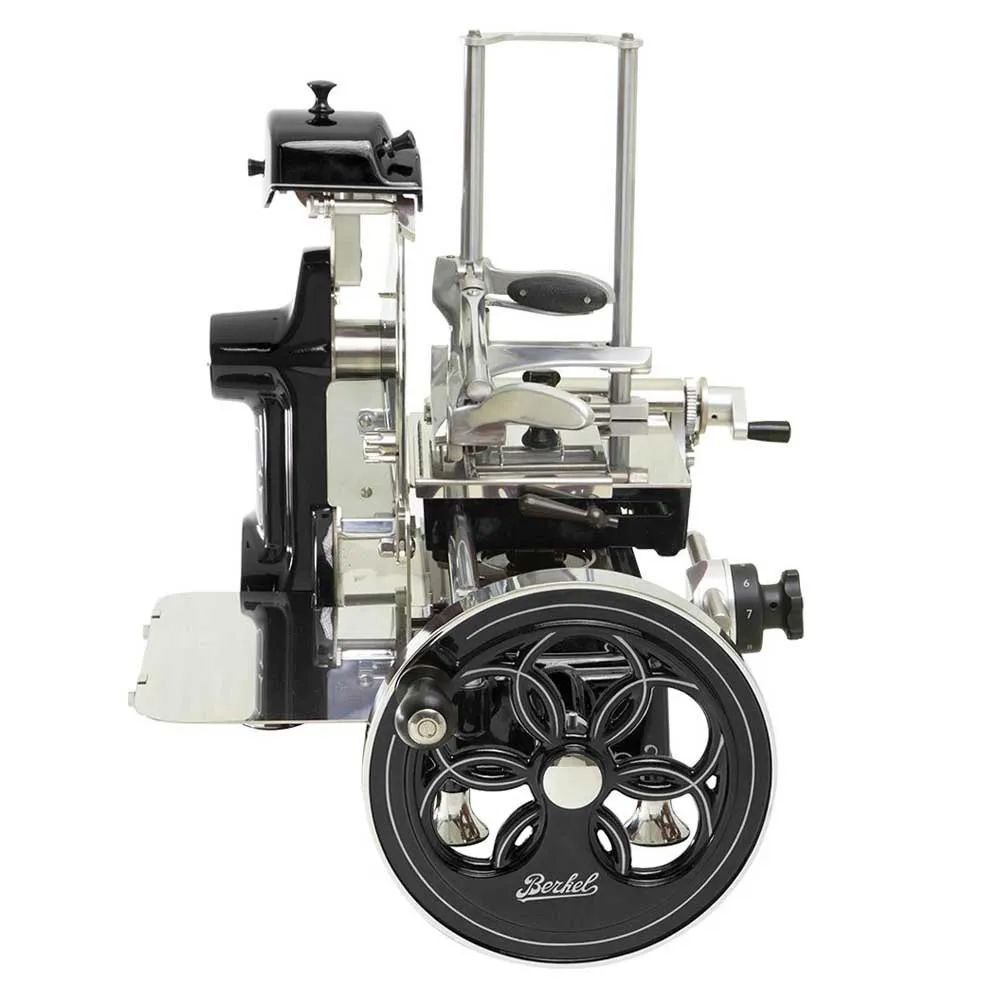 - Klassisk Berkel-svinghjul med firkantet profil internt balansert for å forhindre utilsiktet rotasjon i enhver posisjon.