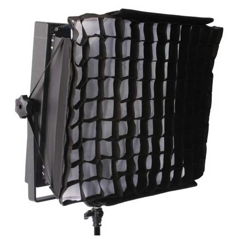 En praktisk softbox for Bresser Led Studio Lamper i LS-serien. En kraftig krok-og-øye festestropp skal skli over de 4 Barn Doors. Diffuserduken og nettet kan festes til den. Dette gir en rask og enkel oppsett uten noen tungvint håndtering av stenger eller lignende. Med denne softboxen med nett kan lyset gjøres tydelig mykere. Dette er veldig egnet for portrettfotografering og videoopptak. Softboxen kan lagres på lite plass og er lett å ta med seg.