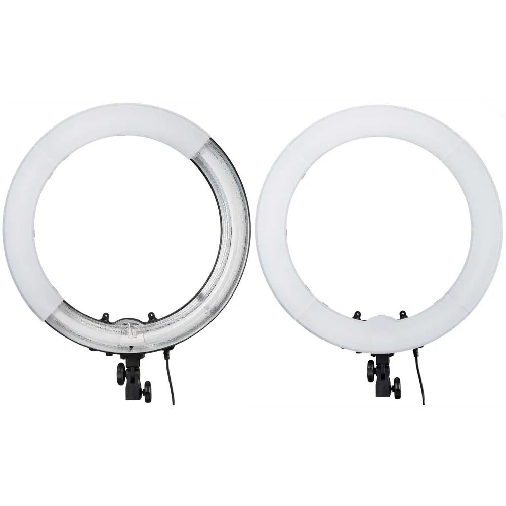 Denne fluorescerende dagslyslampen med en fargetemperatur på 5500k er plassert i en metallreflektor og kjennetegnes av dens pålitelige og konstante belysning. Sterkt anbefalt for profesjonell digital fotografering og videoproduksjon. 75w Lotus-fluorescenslampen blir ikke varm og selv etter langvarig bruk forblir belysningen konstant. Lampen kan vippes. Ringen har et innvendig ribbet sølvfarget hylster, slik at lyset kan rettes sentrert i en definert retning.