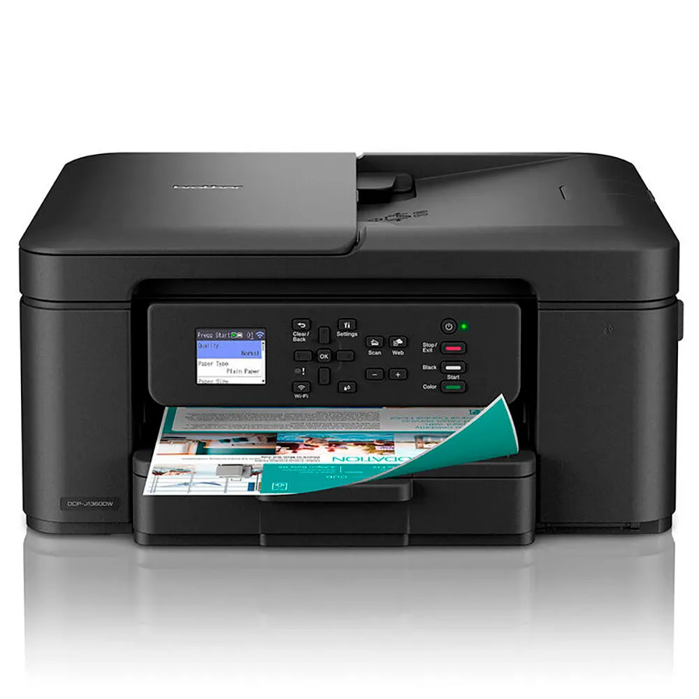 Opplev sømløs utskrift fra hvor som helst med den kompakte og fleksible DCP-J1360DW blekkskriveren, utstyrt med en fargeskjerm, en papirkassett for 150 ark og en automatisk dokumentmater for ekstra bekvemmelighet.