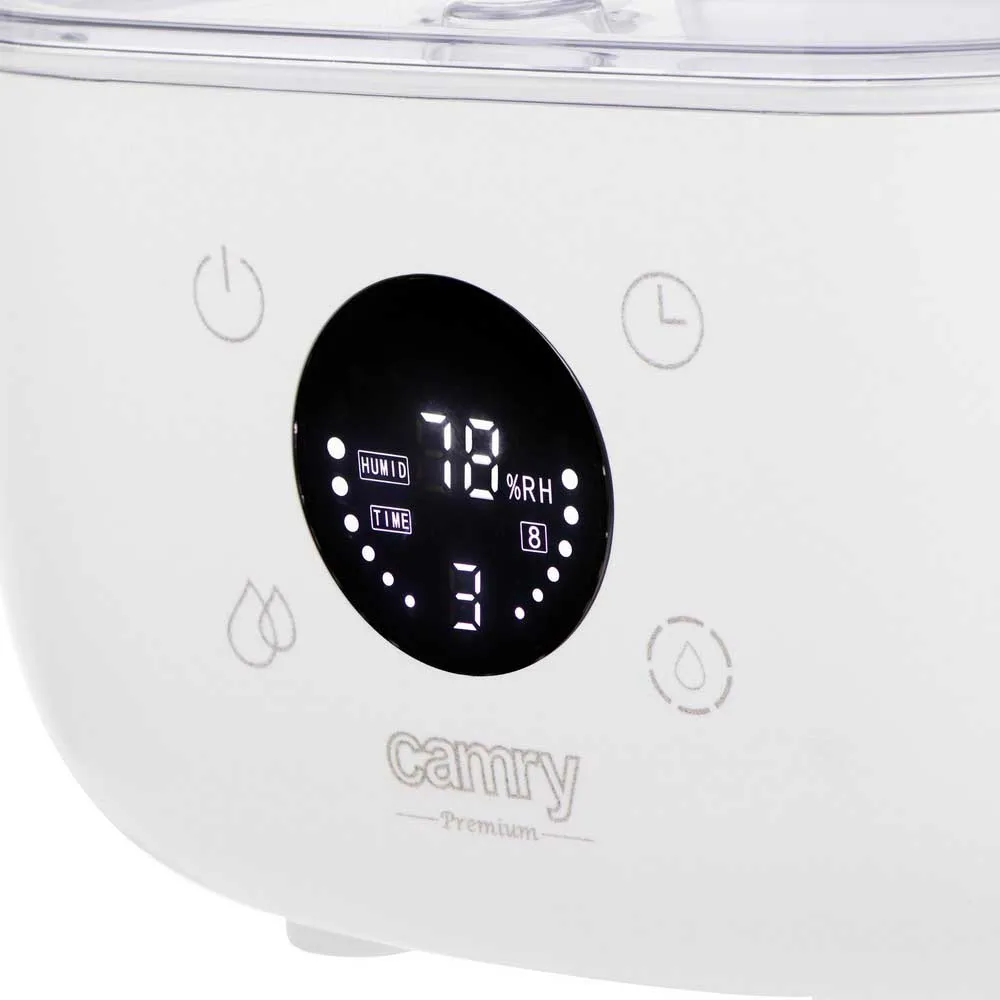 Camry ultralyd luftfukter vil overraske deg med sin avanserte teknologi og funksjonalitet som skaper ideelle luftfuktighetsforhold i interiøret ditt. Enheten er utstyrt med et LED-display med berøringsknapper, noe som sikrer komfortabel betjening og presis kontroll over luftfuktingen. Takket være den unike designen som lar deg fylle vanntanken fra toppen, blir det enda enklere å bruke luftfukteren. Enheten overvåker og viser gjeldende romfuktighet, slik at du kan overvåke forholdene nøyaktig. Camry CR 7973w tilbyr høy luftfuktighetseffektivitet fra 100 til 260 ml per time. Takket være dette vil leiligheten din alltid forbli tilstrekkelig fuktet. Takket være avansert ultralydteknologi bryter luftfukteren vann ned i fine tåkepartikler med en diameter på 1-5 mikron. Dette gjør den fuktede luften skånsom og effektiv. Nattmodusfunksjonen lar deg nyte en god natts søvn ved å sikre at luftfukteren går stille selv om natten. Vanntømmingssensoren slår automatisk av luftfukteren når vannet i enheten er tomt.