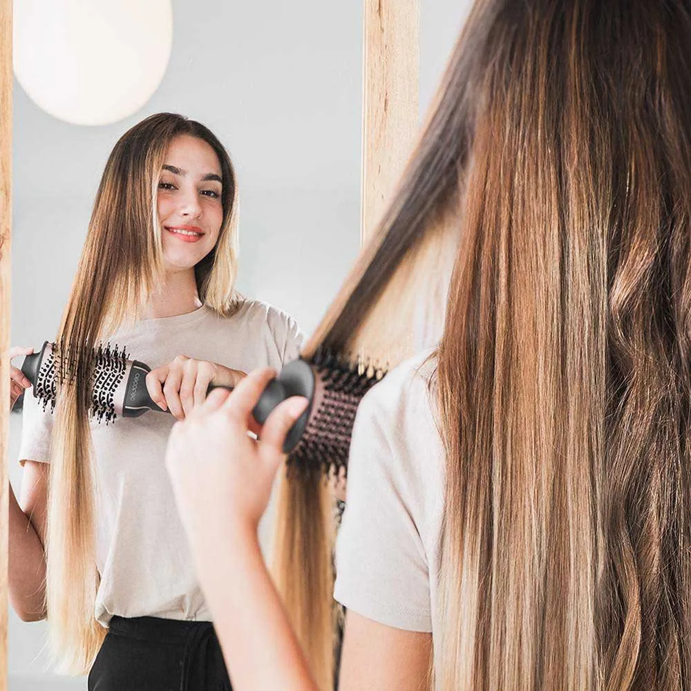 - Vår CeramicCare Unique er en to-i-ett stylingverktøy som gir kraften til en hårføner og volumet til en styler.