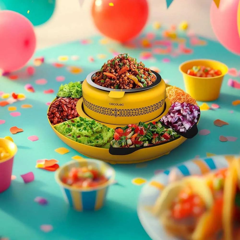 Fun Taco Andale er perfekt for å varme og organisere ingrediensene som trengs for å tilberede de mest deilige og personlige tacoene.