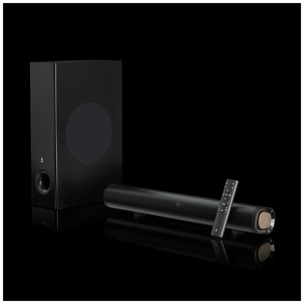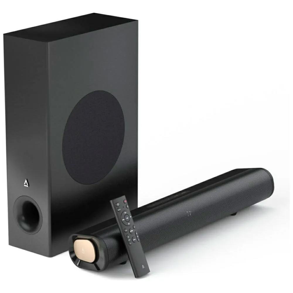 Løft hele hjemmeunderholdningsopplevelsen din med Creative Stage Pro, et høyytelses 2.1 lydplankesystem omhyggelig konstruert for å levere kraftig, filmatisk lyd i en elegant og kompakt formfaktor.