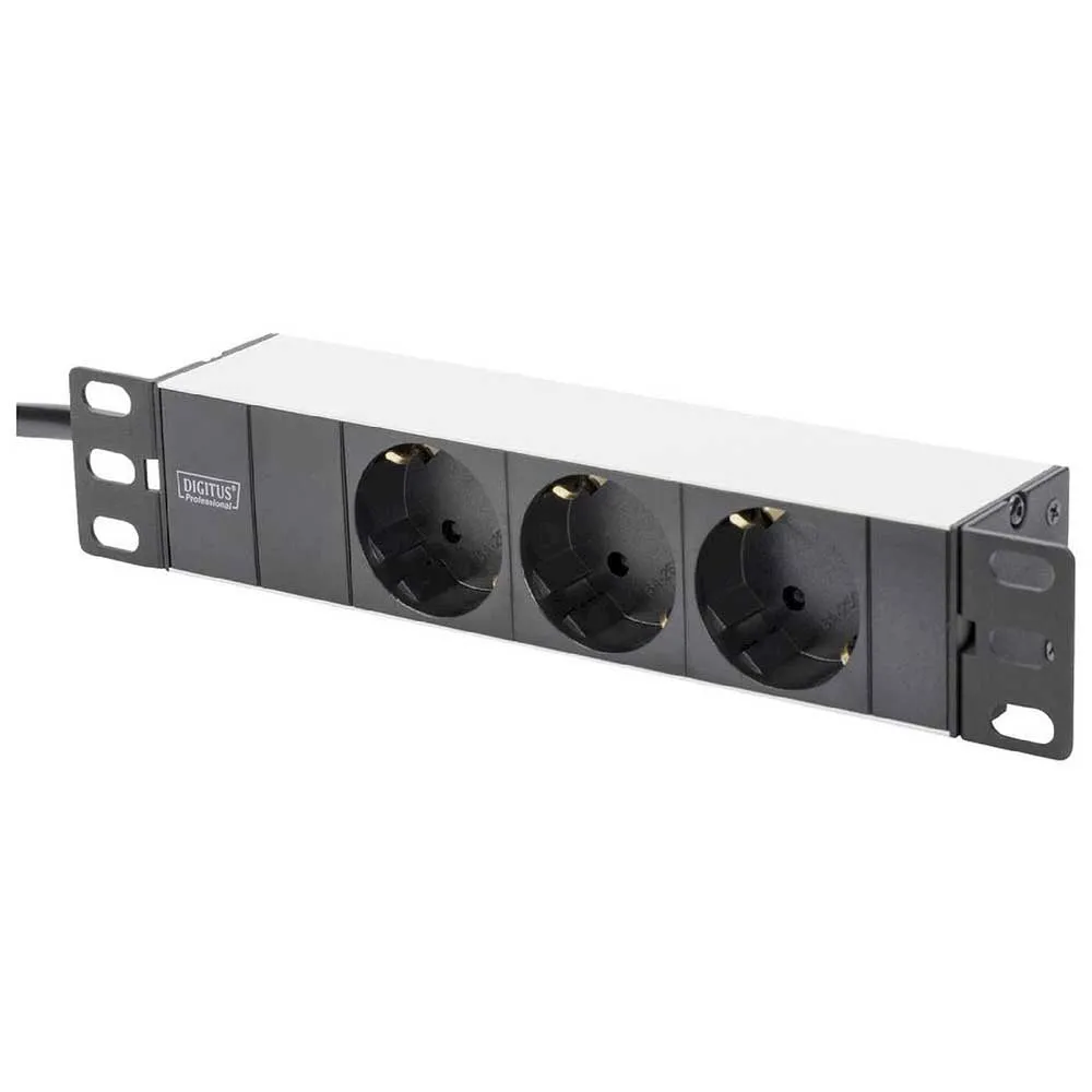 En 10-tommers, 3-veis strømskinne (Schuko-kontakter) for effektivt å distribuere strøm til dine aktive komponenter i racket.