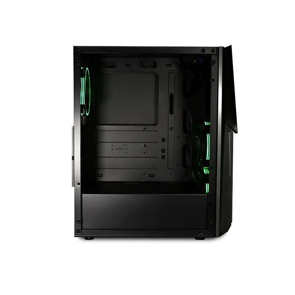 I sin elegante front med titaneffekt har vi installert et metallstativ, samt 2 120 mm RGB-vifter som ved siden av 120 mm RGB-viften installert på baksiden, tillater en optimal luftstrøm for å alltid opprettholde den beste temperaturen på komponentene dine.
