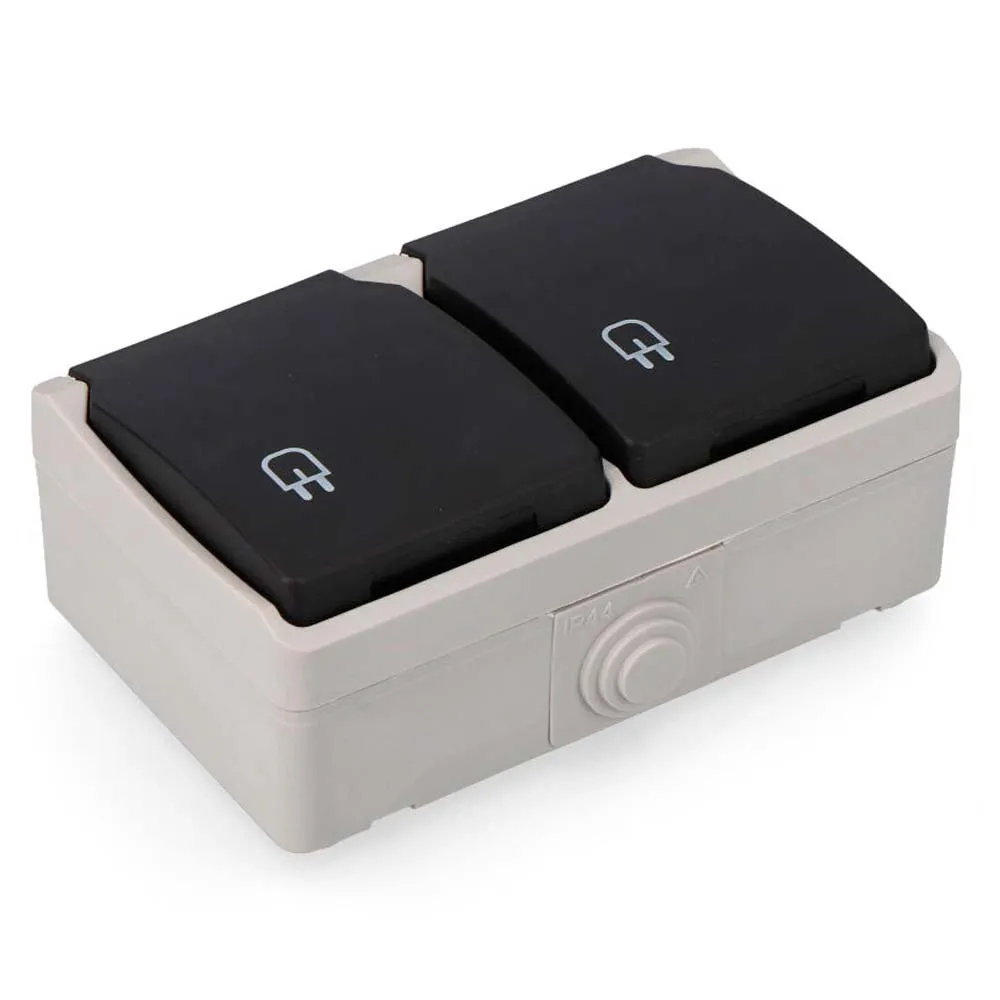 Hvorfor nøye deg med ett enkelt uttak når du trygt kan forsyne to enheter samtidig? Denne doble stikkontaktsokkelen gir to T/T (Schuko-stil med jordforbindelse) uttak, som tilbyr forbedret fleksibilitet for prosjektene dine. Forsyn hagebelysningen og en elektrisk grill samtidig, eller bruk en høytrykksspyler og en våt-/tørrsuger i verkstedet ditt fra ett enkelt, sikkert punkt. Dens kompakte og funksjonelle design gjør den til et ideelt valg for et bredt spekter av bruksområder, inkludert hager, terrasser, balkonger, garasjer, kjellere, landbruksbygninger og kommersielle verksteder.