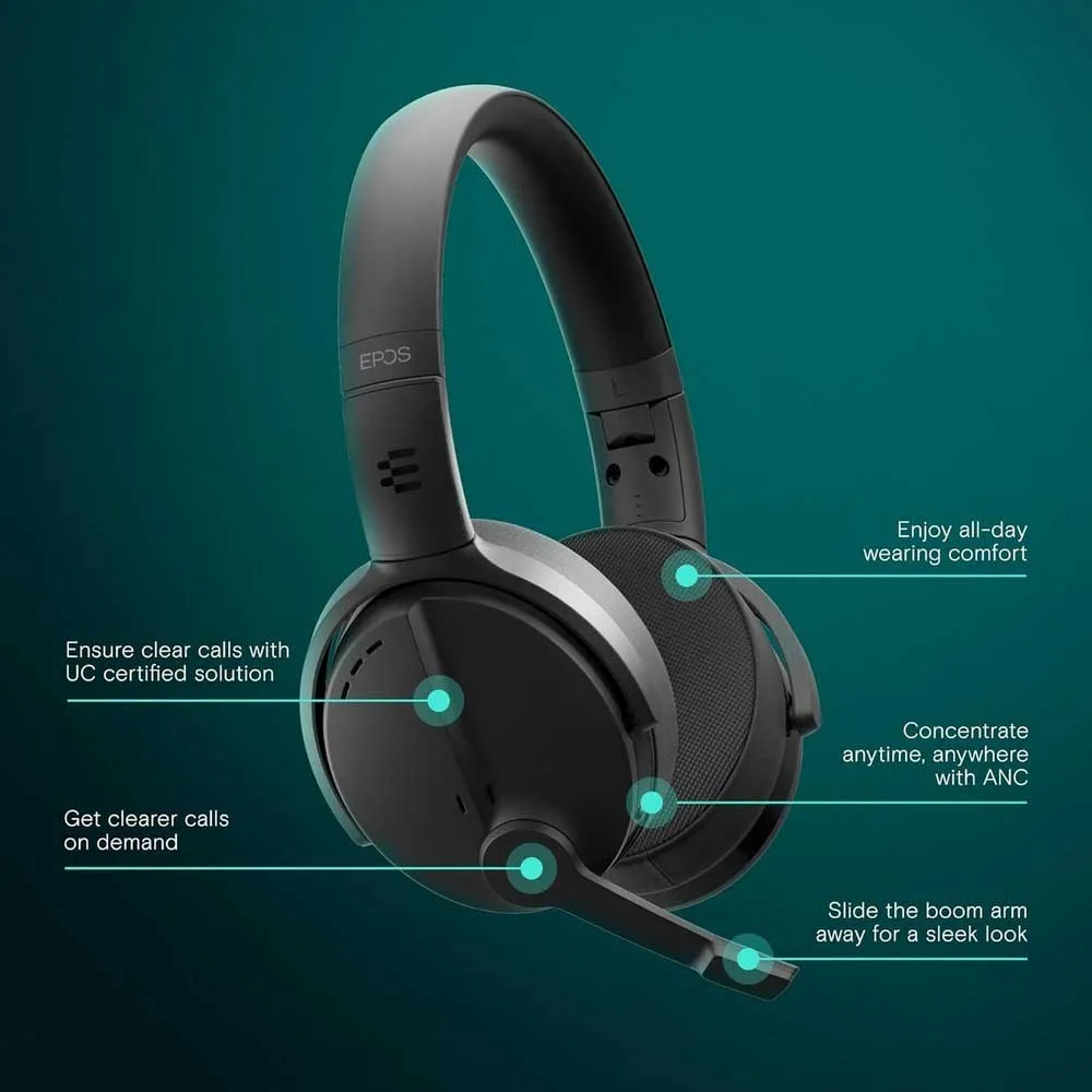 EPOS Adapt 560 ll headset er utviklet for profesjonelle som søker overlegen lydkvalitet og komfort for arbeidsdagen. Enten du navigerer mellom samtaler eller fokuserer på viktige oppgaver, leverer dette headsettet eksepsjonell klarhet og komfort hele dagen.