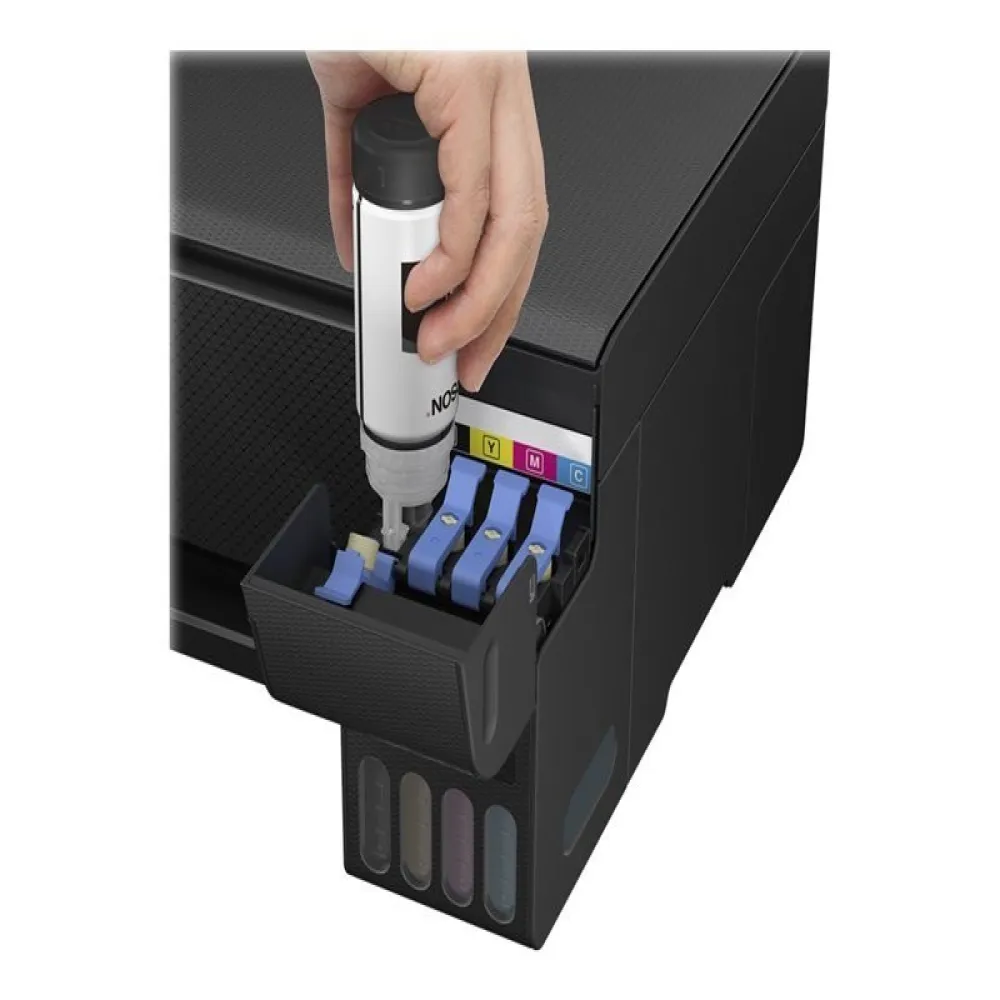 EcoTank gir en problemfri løsning for utskrift hjemme: blekktanker med ultrahøy kapasitet er designet for rene påfyllinger med flasker som inkluderer en låsefunksjon som bare tillater at hver tank fylles med riktig farge.