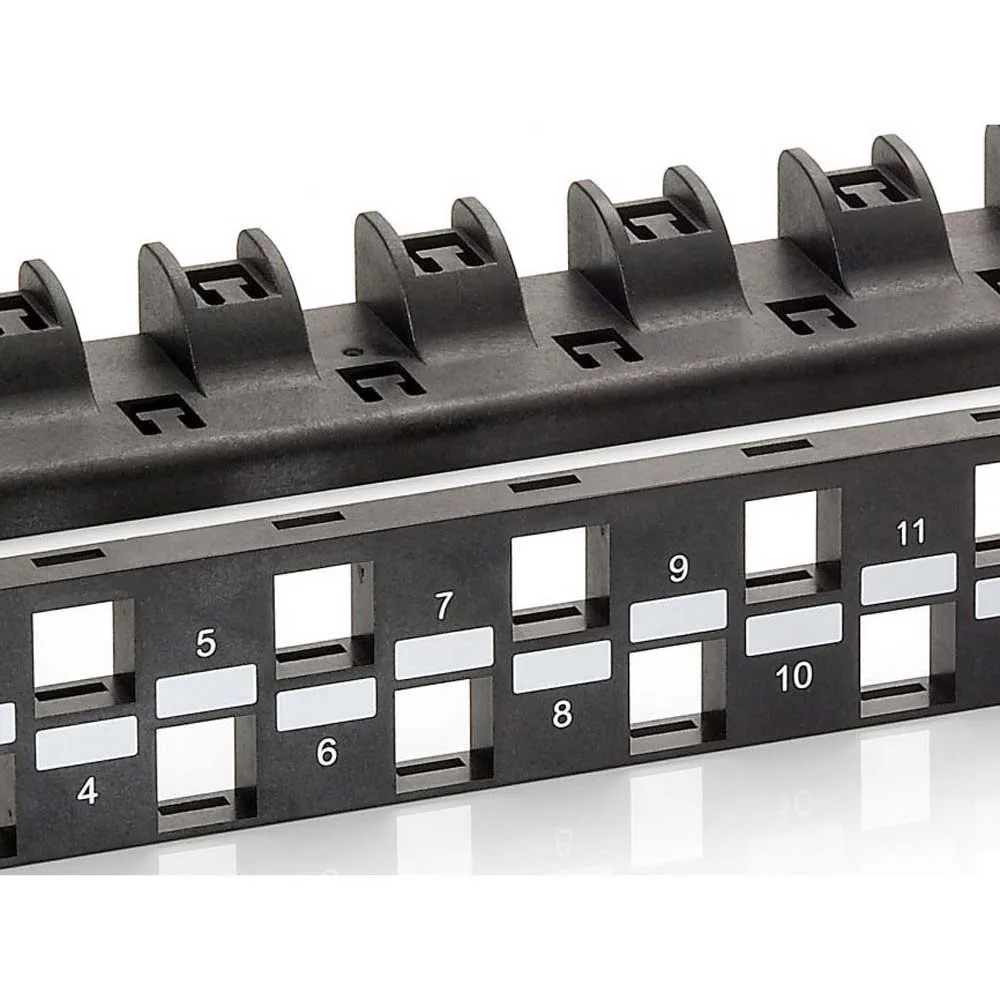 Dette patchpanelet har 24 porter og anbefales å brukes med equip® uskjermede keystone-kontakter og kabler.