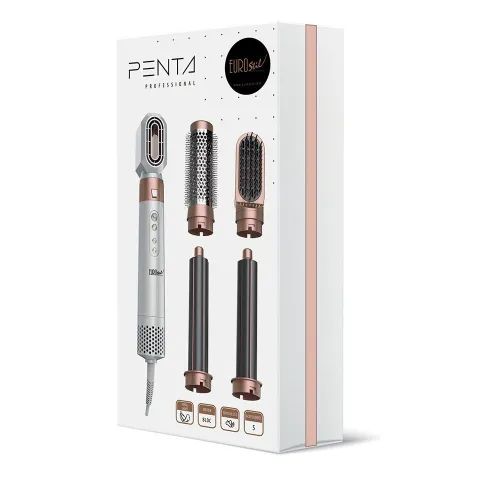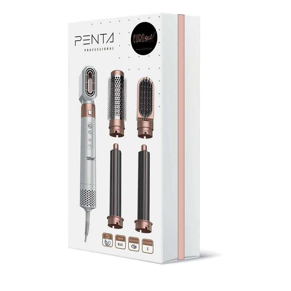 Eurostil penta-hårføneren fungerer med en høyhastighets digital motor og har 5 utskiftbare tilbehør som lar deg oppnå forskjellige finisher.