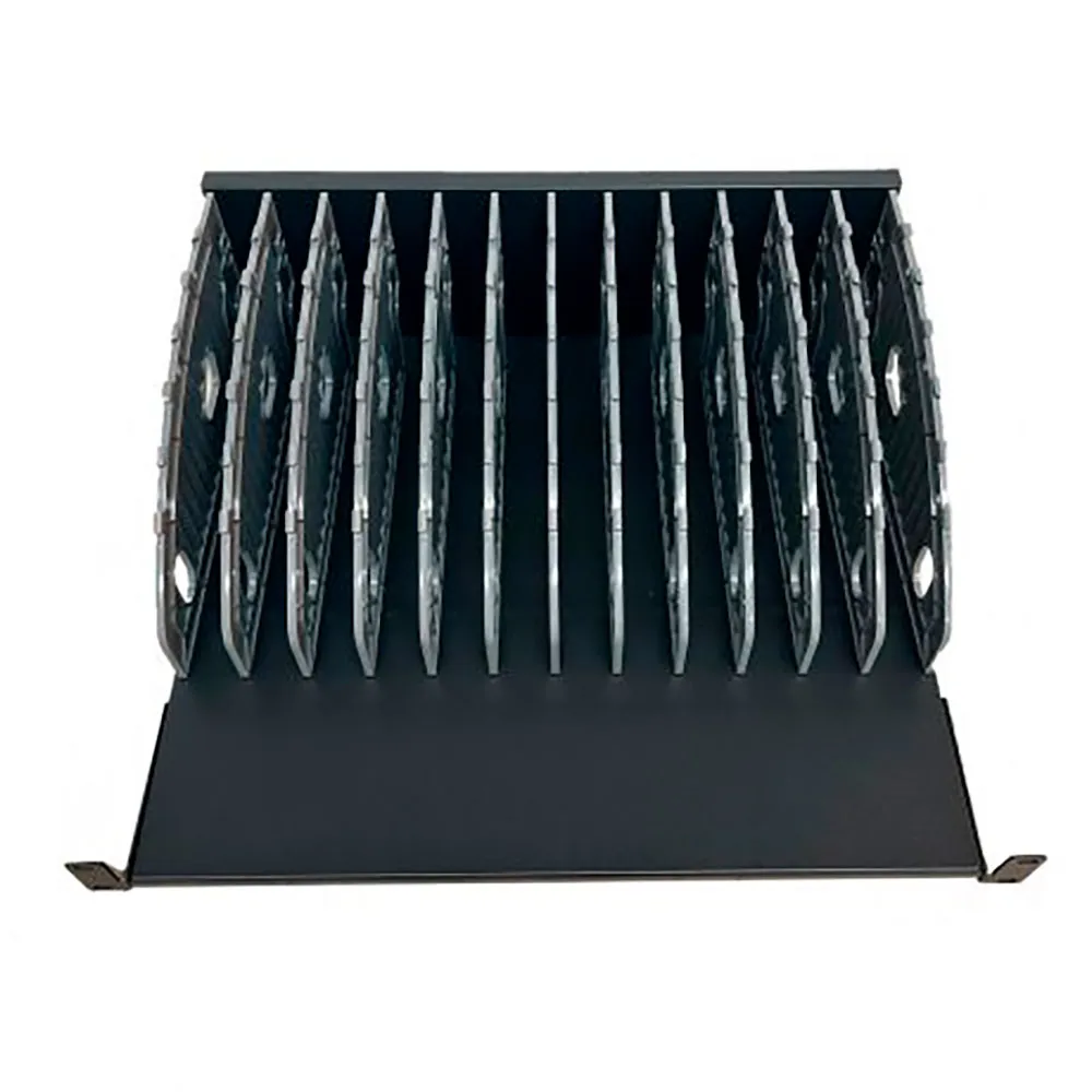Perfekt for kontorer, skoler og profesjonelle miljøer, denne hyllen er 19´´ rackmonterbar og tilbyr en ryddig og sikker ladeløsning.
