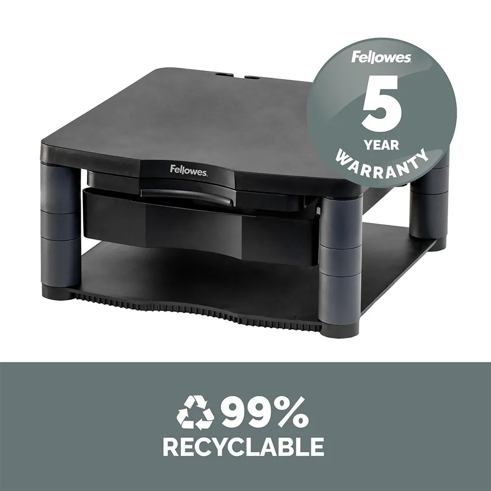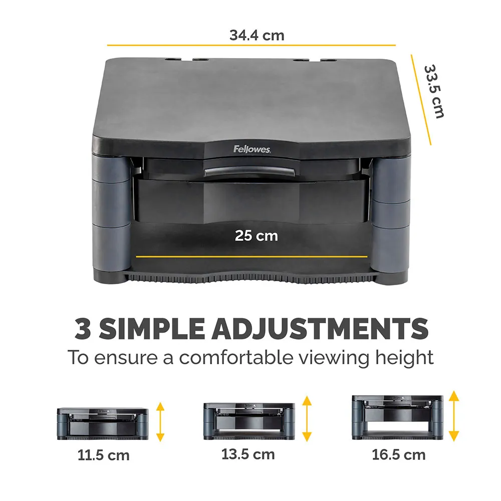 Fellowes dataskjermstativ med 3 høydejusteringer - Premium skjermforhøyer pluss med kabelhåndtering - Ergonomisk justerbart skjermstativ for datamaskiner - Maks vekt 36 kg/Maks størrelse 21´´ - Grafitt.