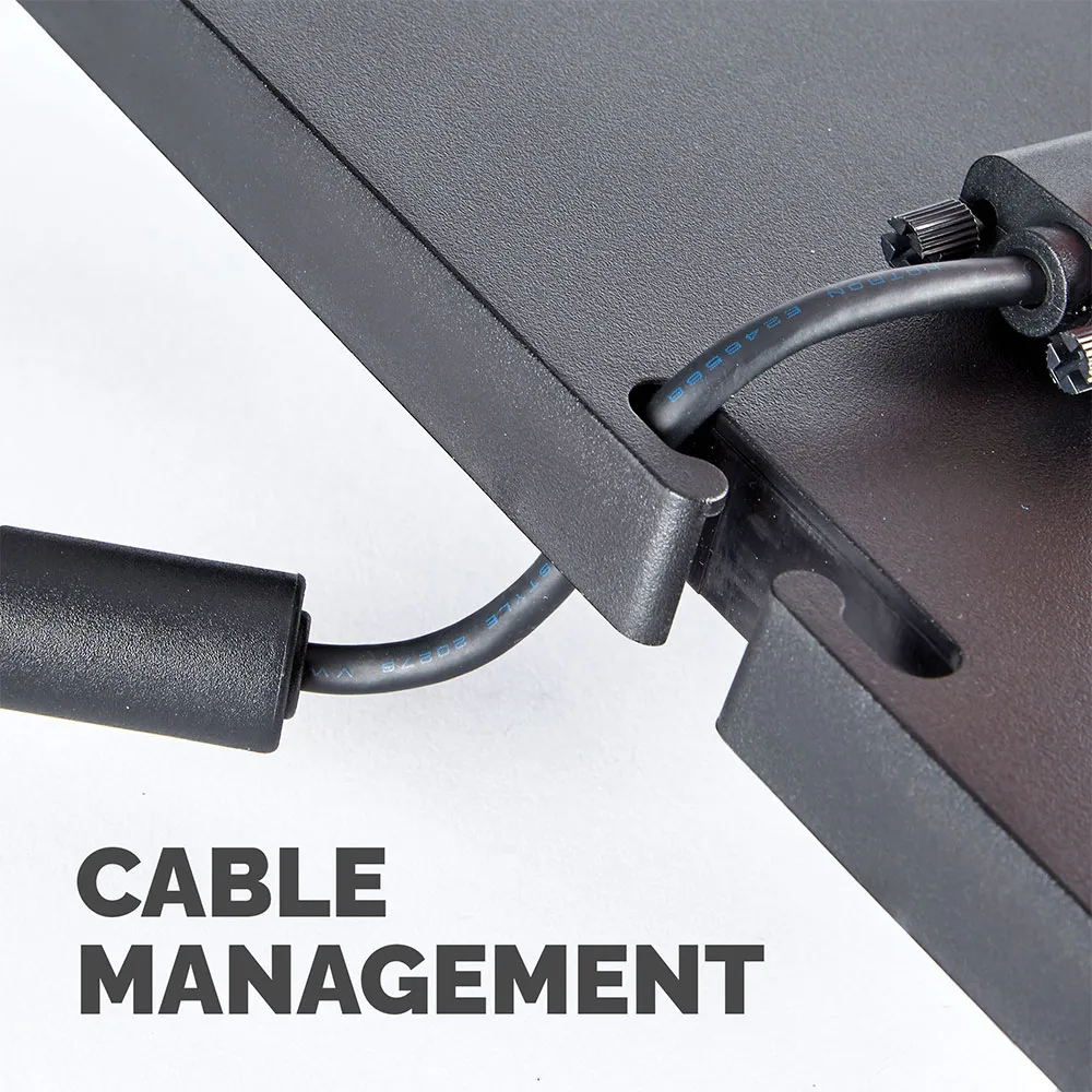 KOPIHOLDER - En innebygd kopiholder finnes foran på skjermstativet, som lar deg plassere dokumentene dine i en komfortabel leseposisjon. KABELHÅNDTERINGSSYSTEM - Reduser rot på arbeidsplassen din med Premium Monitor Riser Plus, som har et intuitivt kabelhåndteringssystem som hjelper deg med å holde kablene organisert og arbeidsplassen fri for rot.