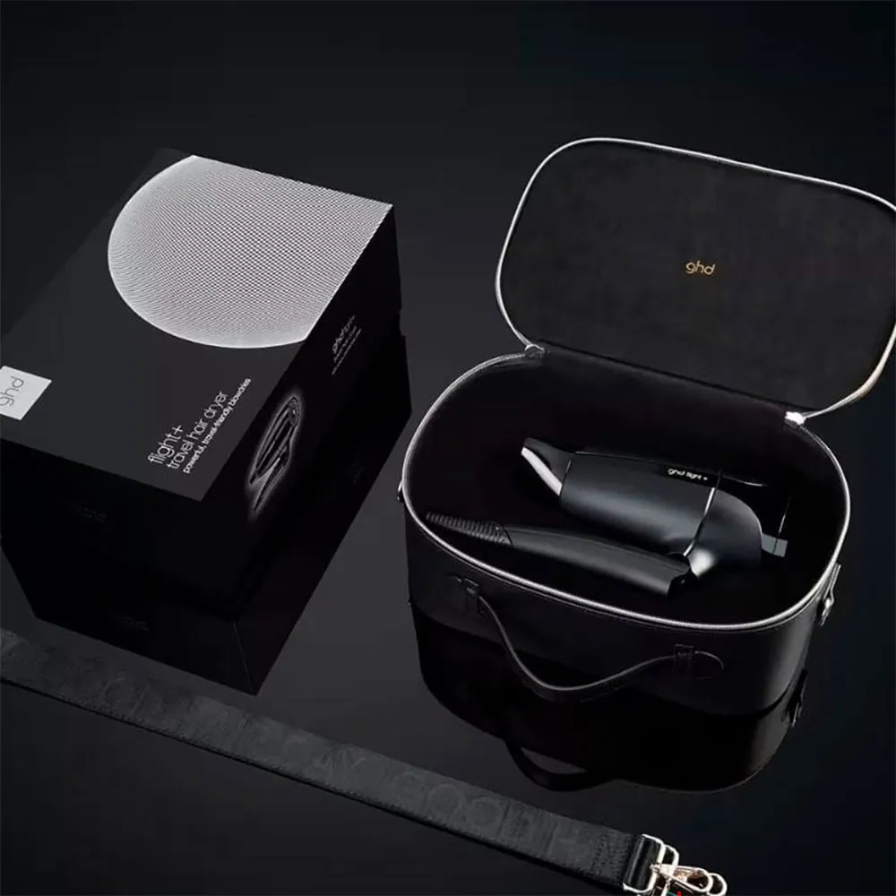 GHD Flight+ Reisehårføner + Gavesett er en hårføner du kan ta med overalt, da den inkluderer et reiseetui og fungerer med internasjonal spenning.