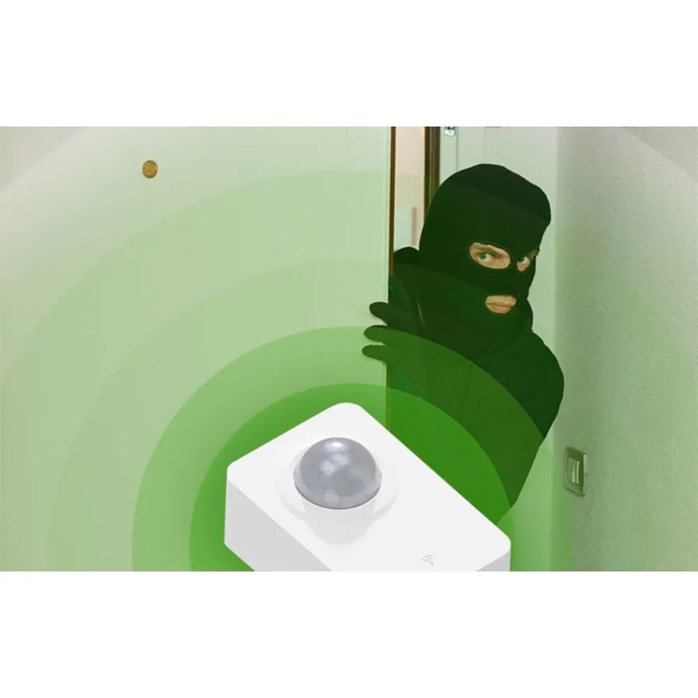 Den bruker 2.4 GHz Zigbee-teknologi med infrarød deteksjon og en bred synsvinkel på 128°.