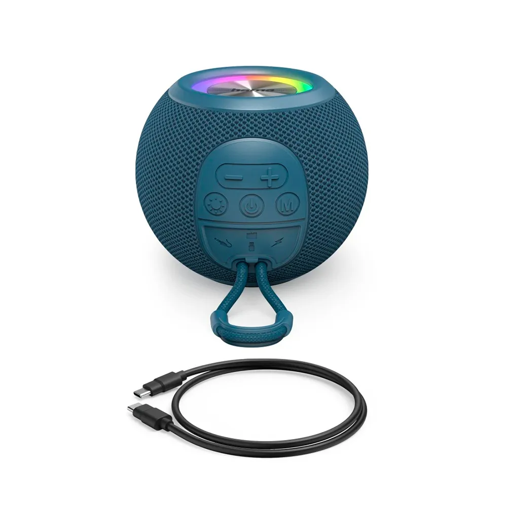 Slipp løs lydsporet ditt hvor som helst med HAMA Ball Shape Bluetooth-høyttaleren. Denne kompakte, men kraftige 5W-høyttaleren er din perfekte følgesvenn for ethvert eventyr. Skap et oppslukende lydbilde ved å pare to høyttalere med True Wireless Stereo-teknologi. Sett stemningen med 5 tilpassbare LED-lysmoduser, eller slå dem av for å fokusere. Med 10 timers batterilevetid, rask USB-C-lading og total tilkobling (Bluetooth 5.3, AUX, microSD, USB), trenger musikken din aldri å stoppe. Har også HD håndfri samtale og et sklisikkert, bærbart design med en bærereim