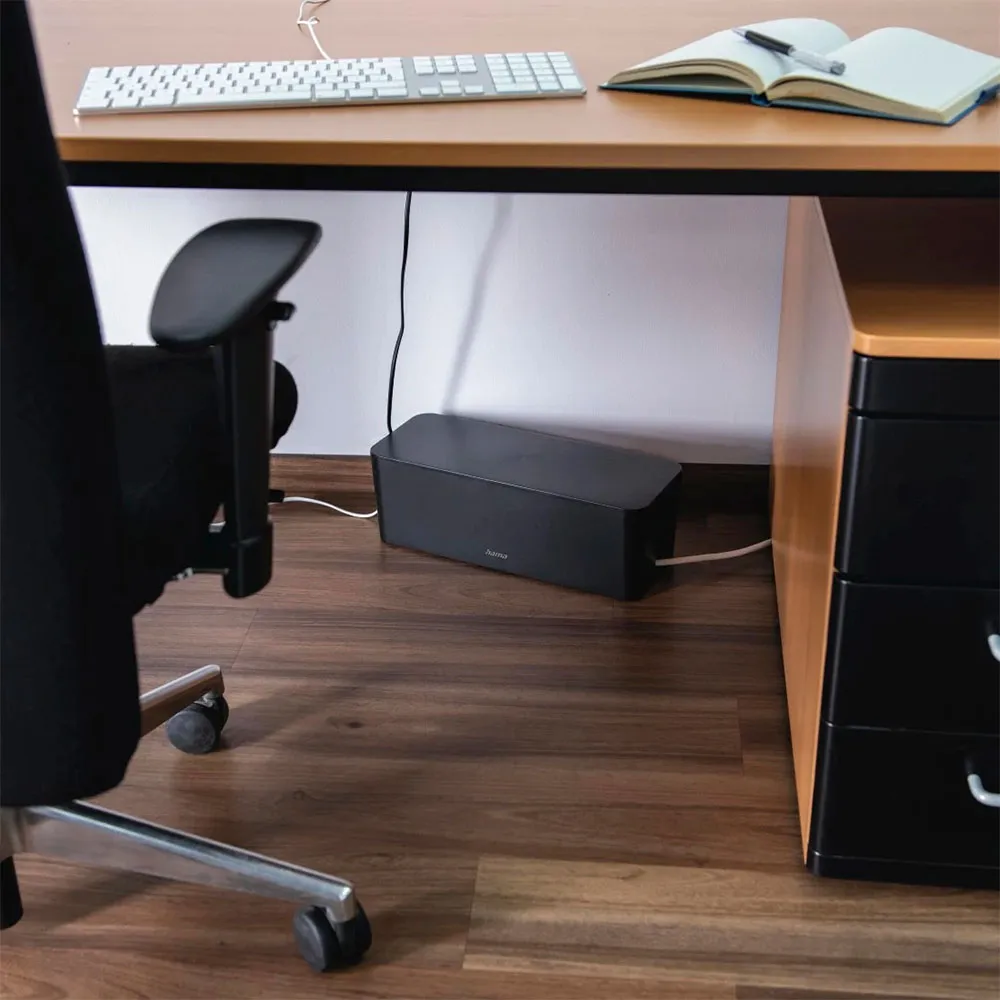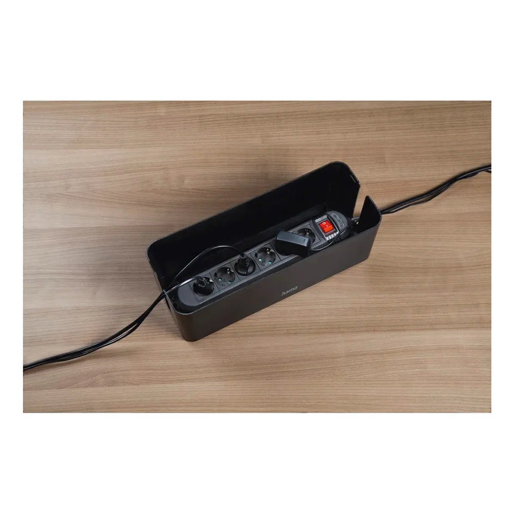 Opplev de umiddelbare visuelle og praktiske fordelene med overlegen kabelhåndtering. Hama Maxi Kabelboks skjuler umiddelbart rotete strømskjøter og overflødige kabellengder, og skaper et rolig og profesjonelt utseende rom. Dette er mer enn bare en estetisk oppgradering; det er et avgjørende sikkerhetstiltak. Ved å omslutte strømskjøter og elektriske tilkoblinger bidrar den til å beskytte nysgjerrige barn og kjæledyr mot potensielle farer. Videre beskytter den din verdifulle elektronikk og kabler mot støv, søl og utilsiktet skade, forlenger levetiden deres og sikrer pålitelig ytelse. Den gjennomtenkte designen fremmer også bedre luftsirkulasjon rundt strømadaptere og ladere, noe som bidrar til å forhindre overoppheting og opprettholde optimal drift.
