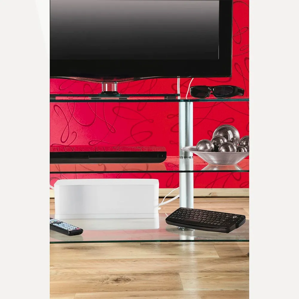 Opplev de umiddelbare visuelle og praktiske fordelene med overlegen kabelhåndtering. Hama Maxi Kabelboks skjuler umiddelbart rotete strømskjøter og overflødige kabellengder, og skaper et rolig og profesjonelt utseende rom. Dette er mer enn bare en estetisk oppgradering; det er et avgjørende sikkerhetstiltak. Ved å omslutte strømskjøter og elektriske tilkoblinger bidrar den til å beskytte nysgjerrige barn og kjæledyr mot potensielle farer. Videre beskytter den din verdifulle elektronikk og kabler mot støv, søl og utilsiktet skade, forlenger levetiden deres og sikrer pålitelig ytelse. Den gjennomtenkte designen fremmer også bedre luftsirkulasjon rundt strømadaptere og ladere, noe som bidrar til å forhindre overoppheting og opprettholde optimal drift.
