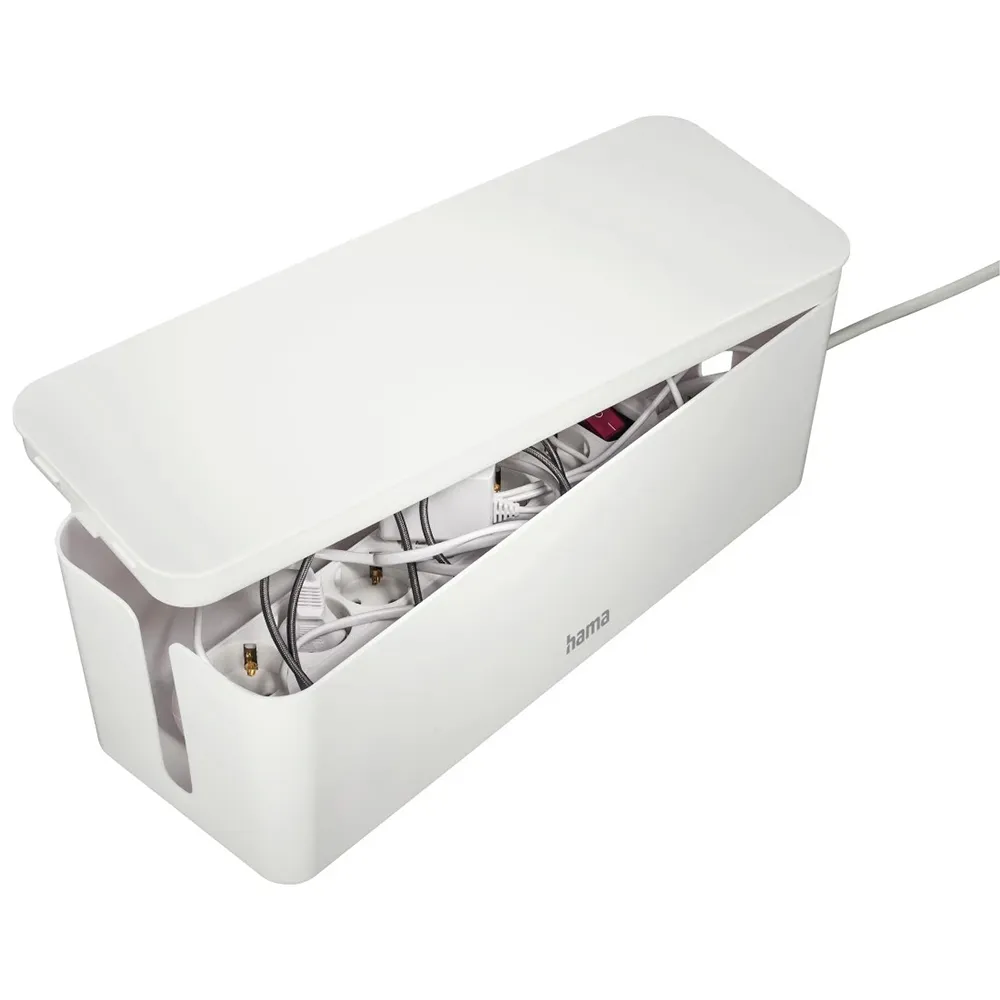 Enten det er for hjemmeunderholdningssystemet ditt, et travelt hjemmekontor eller et bedriftsmiljø, tilbyr Hama Maxi Kabelboks i en skarp hvit finish den perfekte blandingen av form og funksjon. Hev standarden i rommet ditt ved å eliminere kabelrot og introdusere en ny standard for organisering og sikkerhet