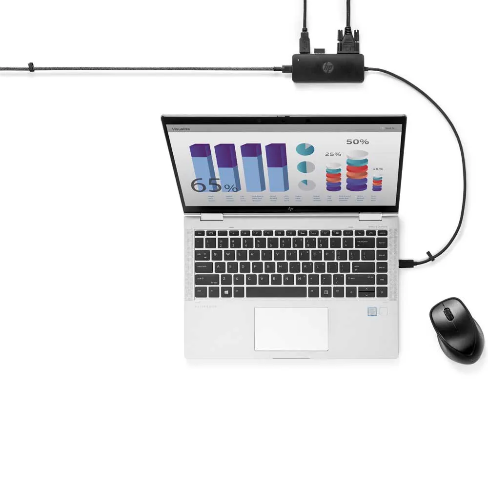 Et knutepunkt. Flere valg. Det er lettere å jobbe hjemmefra. Øk den bærbare datamaskinens muligheter med en flerbrukshub som utvider en USB-C®-port til tre tilkoblinger: to USB-porter for hverdagsutstyret ditt, og legg til en ekstra skjerm via HDMI eller VGA.