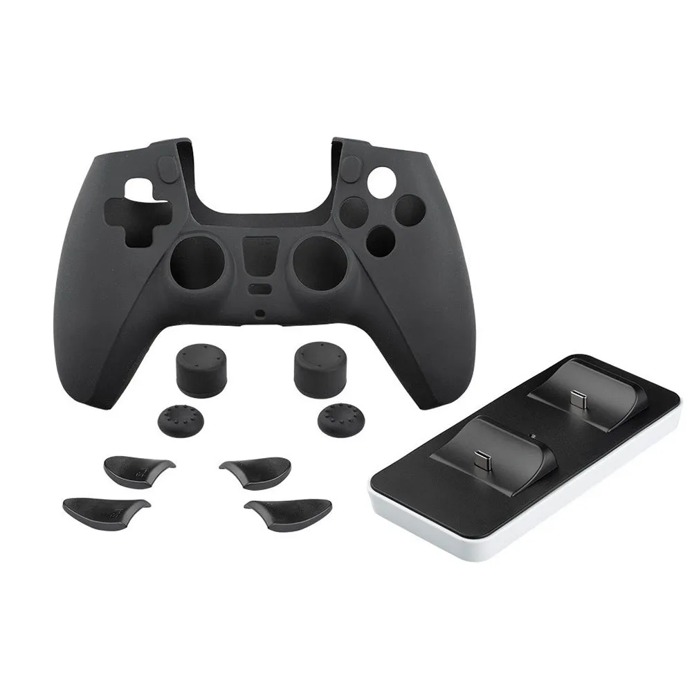 Beskyttende Silikon Kontrollerdeksel: Et presisjonsstøpt deksel som passer perfekt til din DualSense-kontroller. Det gir forbedret grep og robust beskyttelse uten å blokkere knapper, porter eller berøringsplaten, noe som sikrer full funksjonalitet.