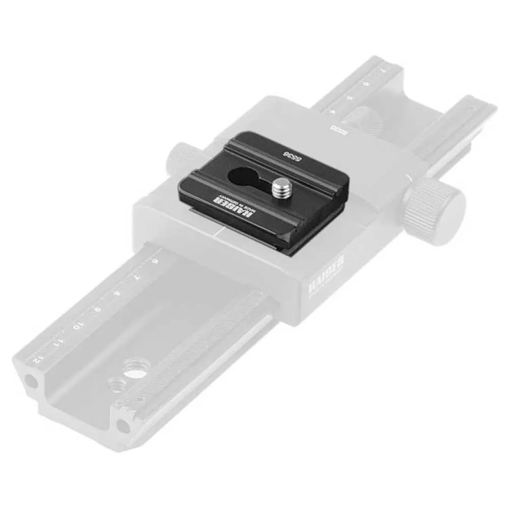 Arca-type hurtigkoblingsplate med låseskrue. 1/4" kameragjenge, låsbar via mynt eller 4 mm sekskantpipe. Passer til KA5535 makrofokuseringsskinne.