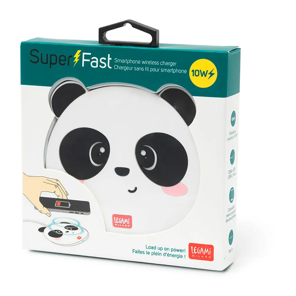 Bytt kabler for søthet med Legami Super Fast trådløs smarttelefonlader - Panda. Dette bedårende tilbehøret lar deg lade smarttelefonen din uten kabler og plugger. Bare plasser telefonen på den sklisikre silikonoverflaten og se batterinivået gå fra 1 til 100 %.