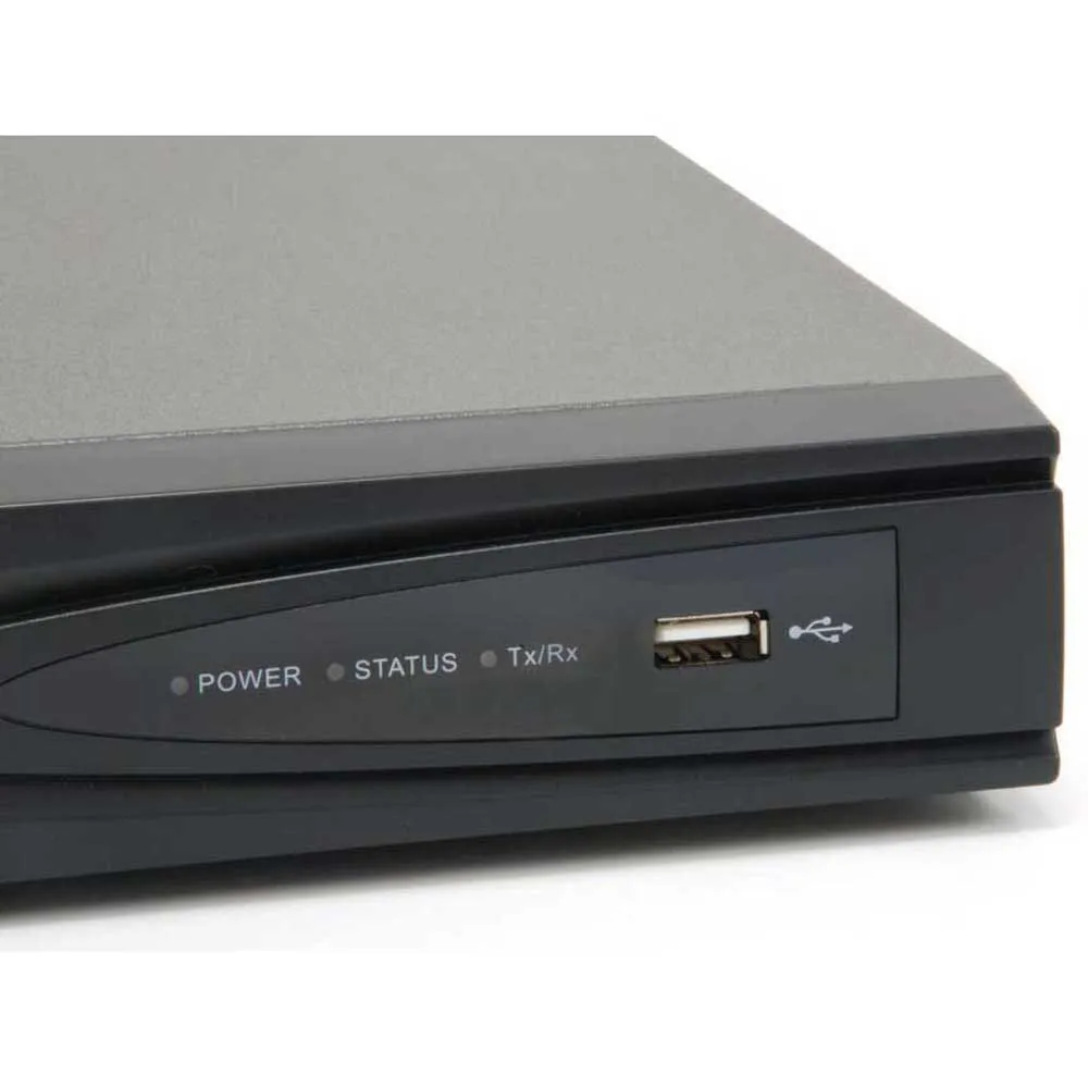 LevelOne NVR-0504 NVR muliggjør live-visning, opptak og avspilling for opptil 4 IP-nettverkskameraer samtidig, med opptil 8 megapikslers oppløsning og H.265/H.264+/H.264 videokomprimering.