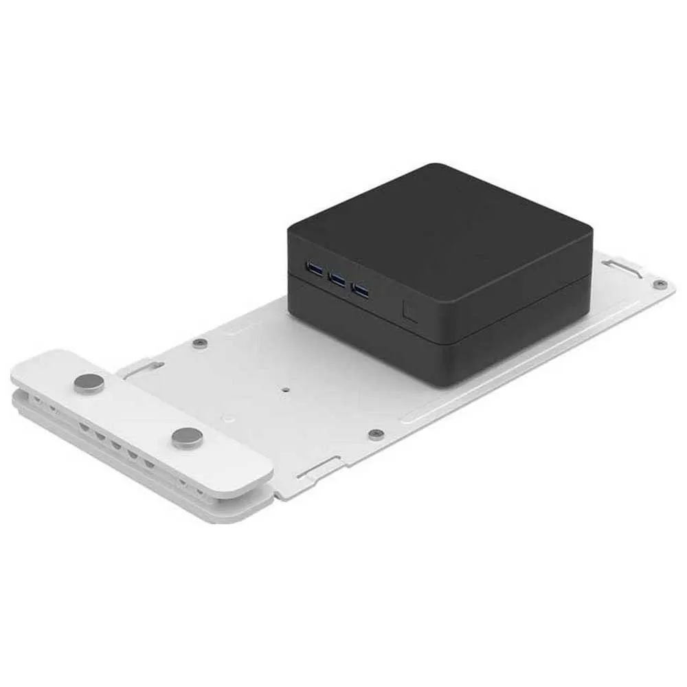 - Monter datamaskinenheten på en sikker måte ute av syne og ut av fare. Compute Mount er designet for diskret installasjon bak skjermer, inne i skap eller på vogner, og passer perfekt for alle videokonferanserom – og perfekt for Logitech RoomMate, Google Meet datasystem, Intel NUC og andre databehandlingsenheter for videokonferanser.