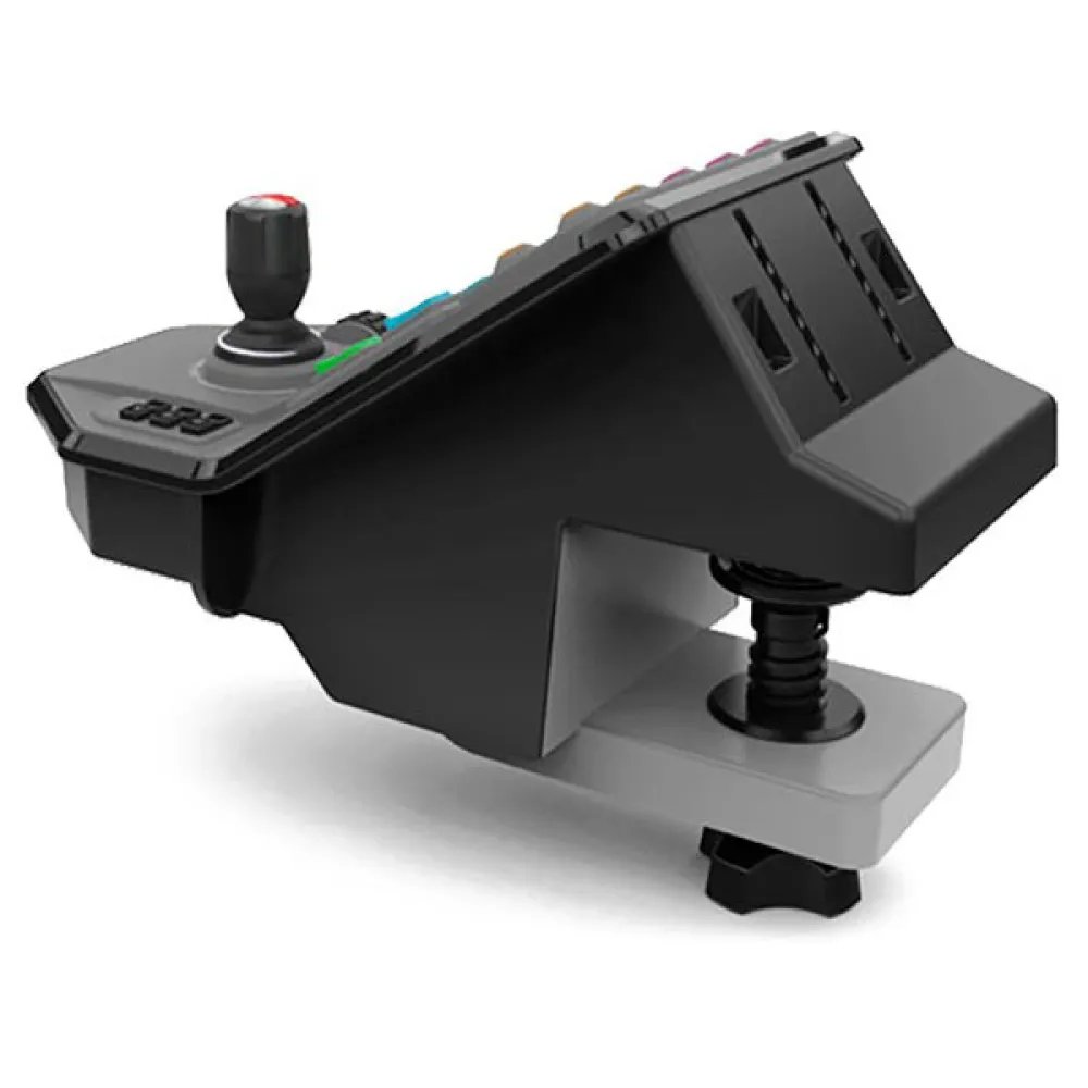Realistisk frontlasterpinne. Få følelsen av ekte kontroll over tunge maskiner som trehøstere, kraner, motorsager, flishugger, tilhengere og mer. Lasterpinnen kontrollerer vertikale, horisontale og vri akser, mens en modusbryter på toppen av pinnen dobler de kommandoene som gir deg seks akser.