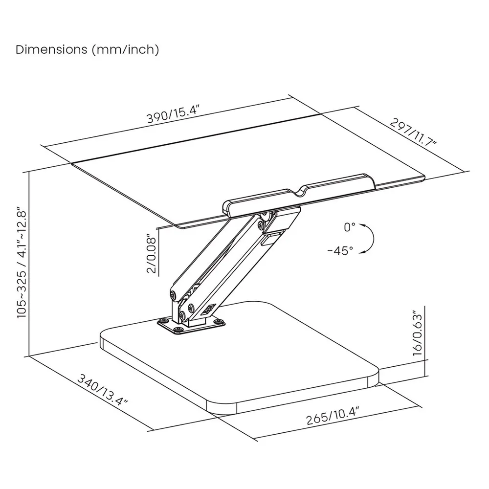 -Maclean bordstativ for skjerm eller bærbar PC gassfjær for stående og sittende arbeid svart MC-493
