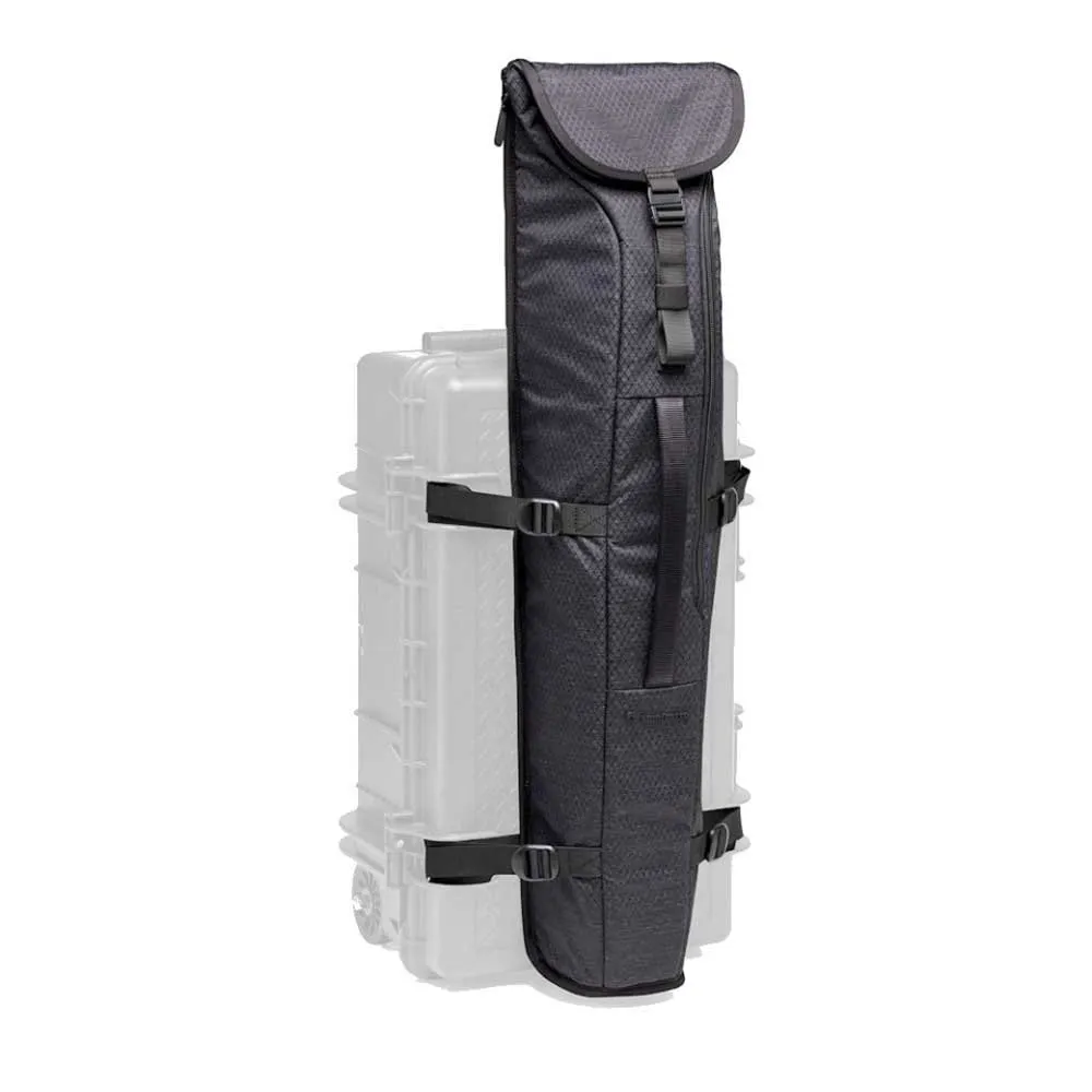 Manfrotto Pro Light Tough Tripod Bag er en eksklusivt utformet løsning som er kompatibel med alle Manfrotto Pro Light Tough Hard Cases: Gjennom 4 (eller 6 avhengig av modellen av Tough Cases) Praktisk plasserte metallstifter plassert på frontpanelet til Manfrotto Tough Cases, Denne tøffe stativvesken kan enkelt kobles til gjennom et kraftig og slitesterkt justerbart stroppsystem for å forbedre utstyrets bærbarhet. Denne stativvesken passer til en rekke størrelser på stativ takket være dens spesielle utvidbare og tilpasningsdyktige design. Fra reisestørrelsesstativ som Manfrotto Befree Range Opp til profesjonelle stativer som 055-serien med Xpro kulehode eller Xpro 3-veis hode festet. Denne stativvesken kan også brukes som en frittstående bæreløsning med bruk av den medfølgende skulderremmen og det slitesterke fronthåndtaket. Pro Light Tough Tripod Bag er laget av behandlet stoff for å være fukt- og vannavstøtende.